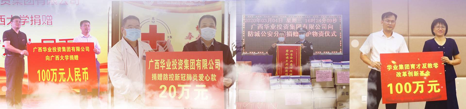 華業(yè)集團(tuán)以履行社會(huì)責(zé)任為己任的理念贏得了社會(huì)各界的肯定,先后獲得“自治區(qū)統(tǒng)戰(zhàn)部2020年‘抗疫先進(jìn)單位’”“2019年廣西‘萬(wàn)企幫萬(wàn)村’精準(zhǔn)扶貧行動(dòng)‘先進(jìn)民營(yíng)企業(yè)’”“廣西統(tǒng)一戰(zhàn)線脫貧攻堅(jiān)先進(jìn)單位”“紅十字天使計(jì)劃博愛(ài)救心八桂行愛(ài)心單位”“支持共青團(tuán)工作先進(jìn)單位”“情系家鄉(xiāng)教育”“模范職工之家”“防城港市愛(ài)心企業(yè)”“防城港市社會(huì)公益慈善事業(yè)突出貢獻(xiàn)單位”等榮譽(yù)稱號(hào)。